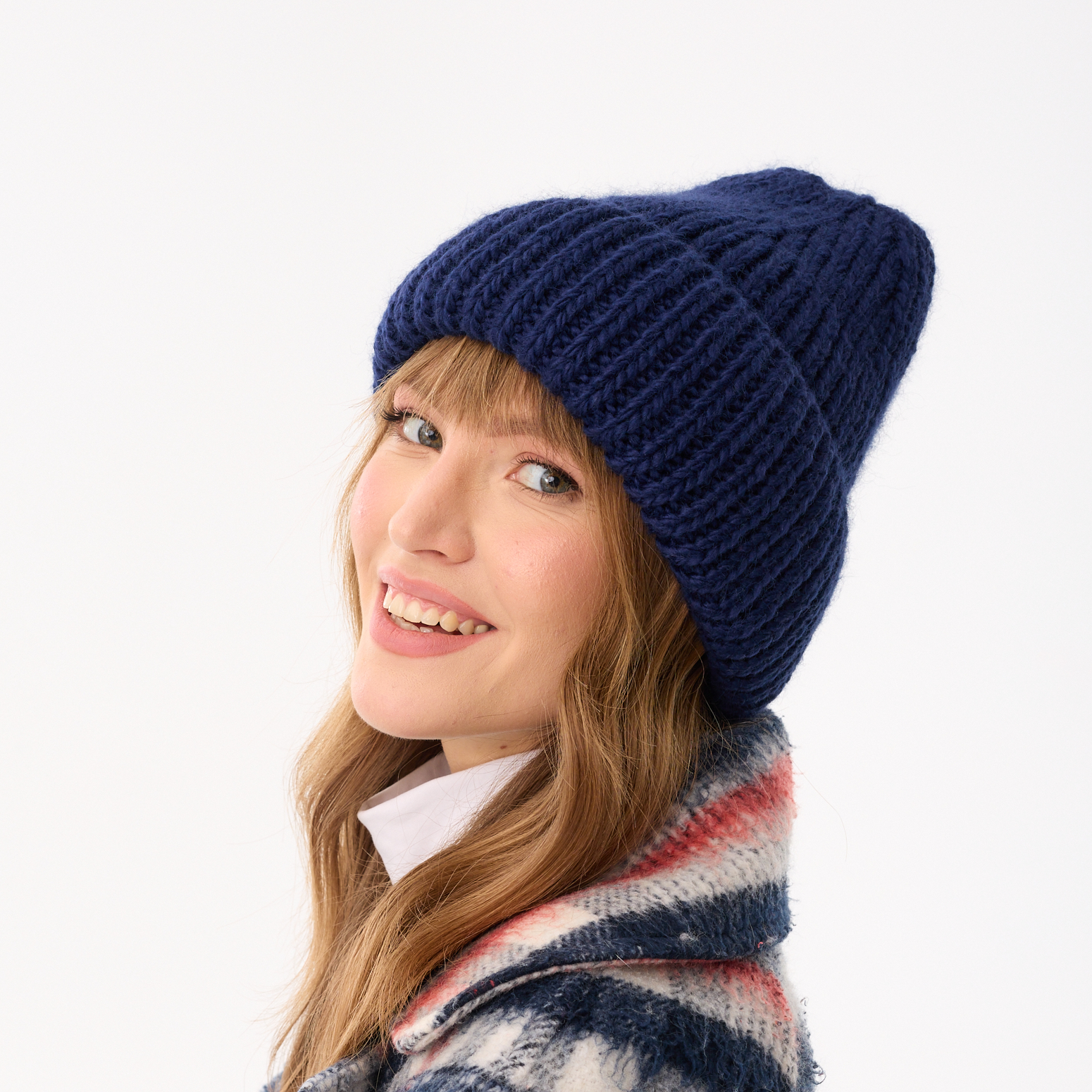 This product is made from yarn blended with 10% of wool, its shape as well as the thick knit texture aligns with the hottest trends of “chunky” winter hats.