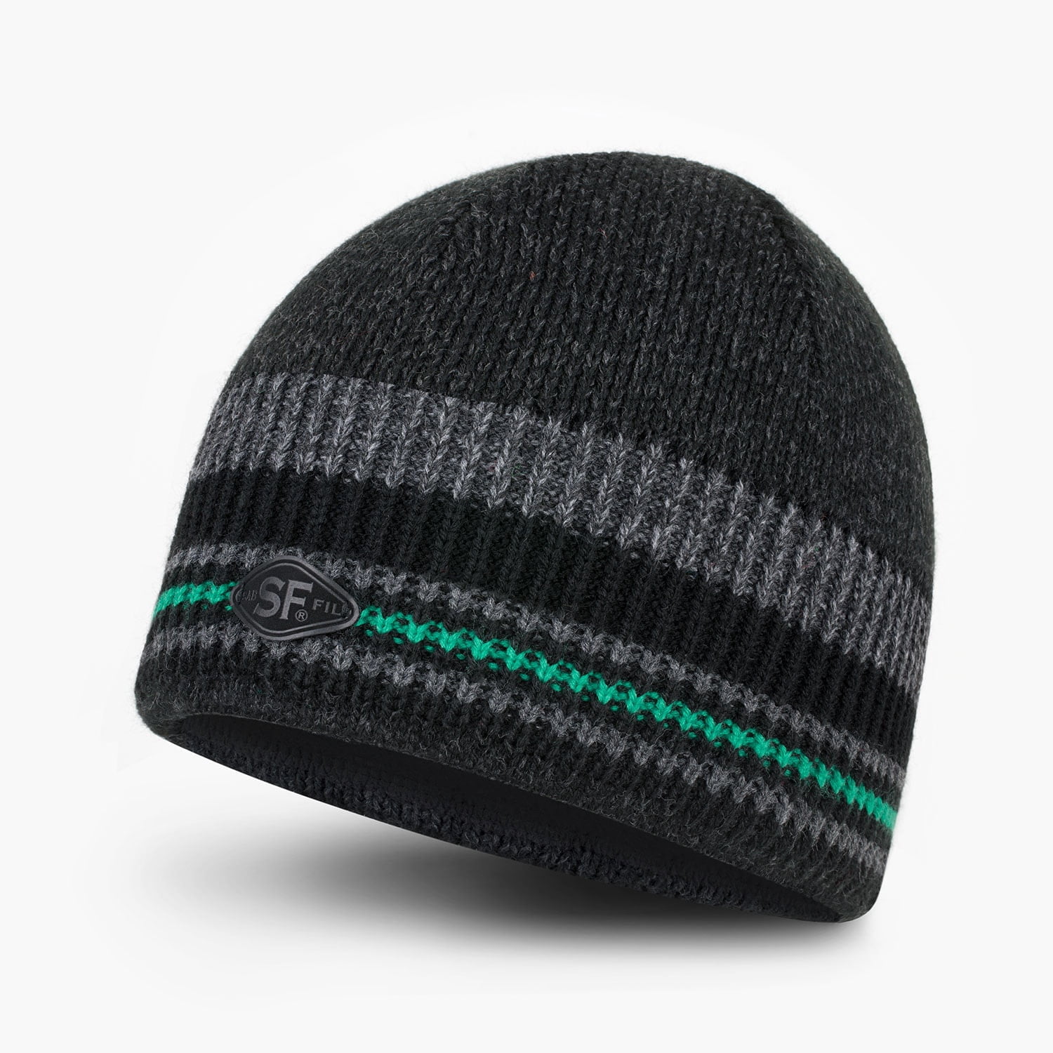Czapka zimowa męska, z polarem, antracyt, zielony, Melange Stripe
