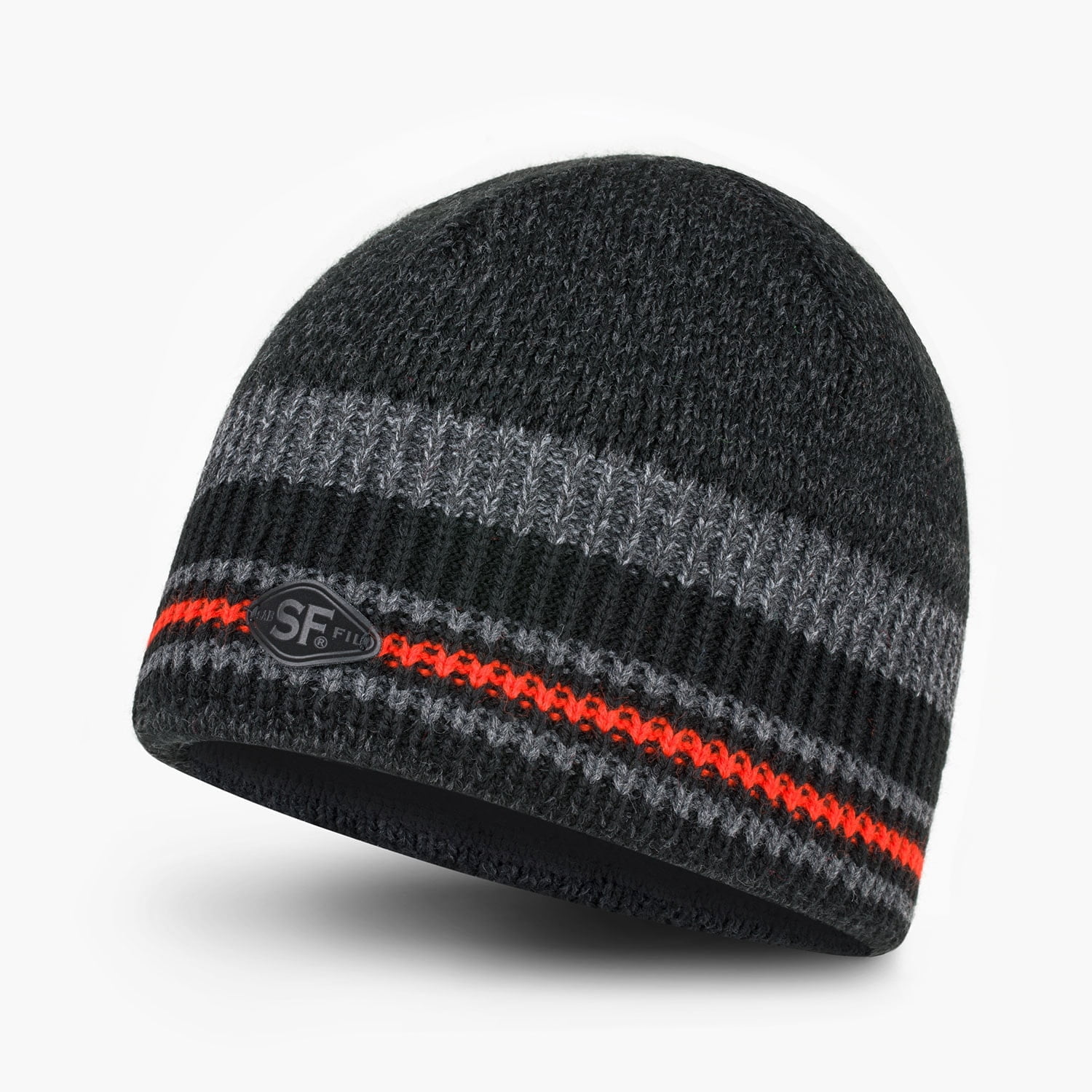 Czapka zimowa męska, z polarem, antracyt, pomarańczowy, Melange Stripe