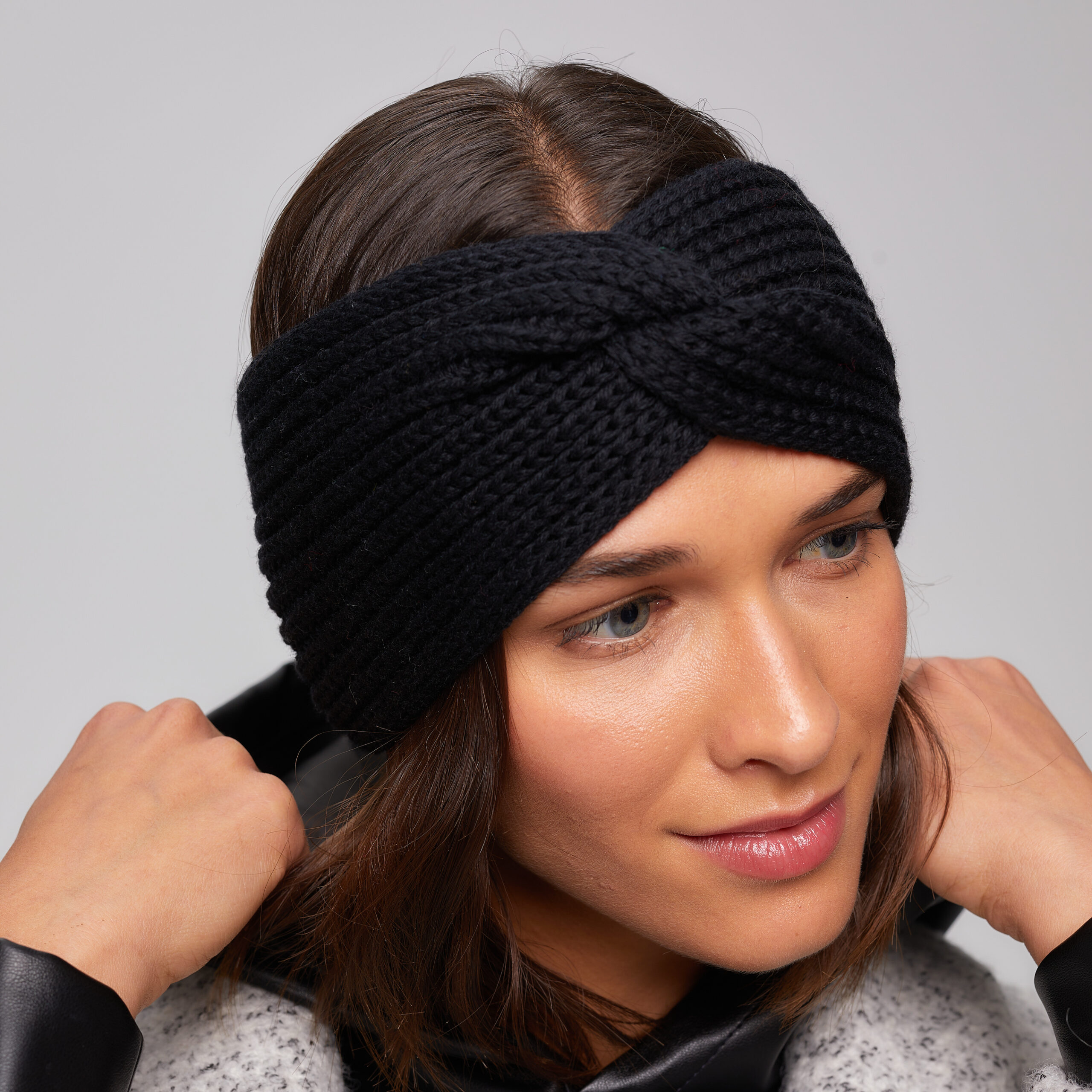 Opaska zimowa damska, czarna, 100% wełniana merino, Elea